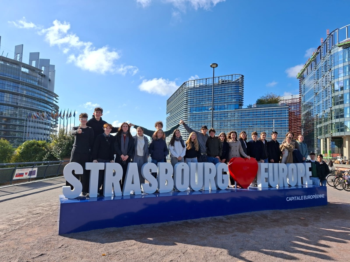 Am Sonntag erkundeten wir gemeinsam die Stadt, sammelten erste Eindrücke von der deutsch-französischen Grenzstadt und kamen in den Genuss der französischen Küche. Nach einer ruhigen Nacht trafen wir am Montag unsere Partnerschule aus Achern, nahmen an einem gemeinsamen Workshop unserer Lehrer:innen teil und flanierten am Nachmittag durch Petite France. Besonders eindrucksvoll war das Straßburger Münster, das aufgrund des Vogesensandsteins eine rötliche Färbung hat. Am darauffolgenden Tag besichtigten wir mit der Partnerschule das EU-Parlament. Danach blieb noch Zeit, um ein letztes Mal französisch zu Mittag zu essen, bevor wir am späten Nachmittag mit dem TGV Richtung Brüssel weiterfuhren.