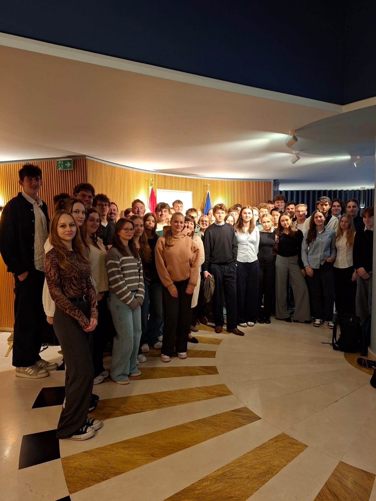 Der erste Tag in Brüssel begann mit einem Besuch der Ständigen Vertretung Österreichs bei der EU, gemeinsam mit unserer Partnerschule aus Haßfurt. Mit den öffentlichen Verkehrsmitteln erreichten wir anschließend das EU-Parlament in Brüssel, wo wir zwei EU-Abgeordnete, darunter die Absolventin unserer Schule, Anna Stürgkh, zu einem Austausch trafen.