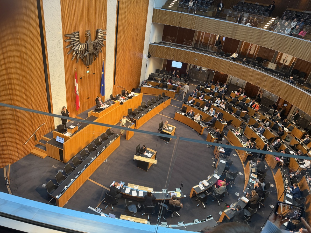 An diesem Nachmittag wurden mehrere Themen diskutiert, unter anderem über eine Schutzzone vor Abtreibungskliniken sowie über die Abschaffung der ORF-Gebühren. Die Schüler:innen konnten auch beobachten, wie nach einer lebhaften Diskussion über ein Gesetz abgestimmt wurde.