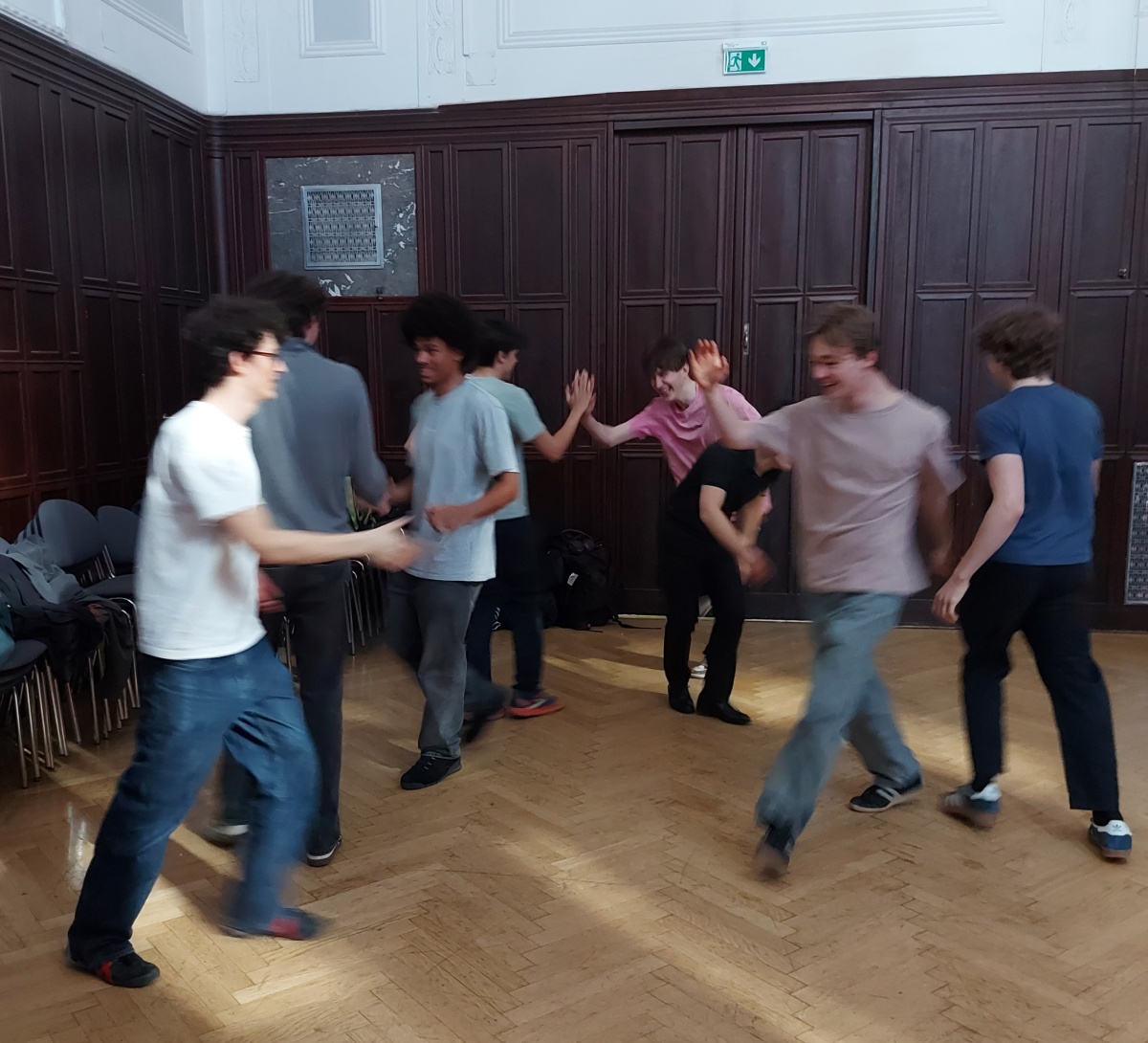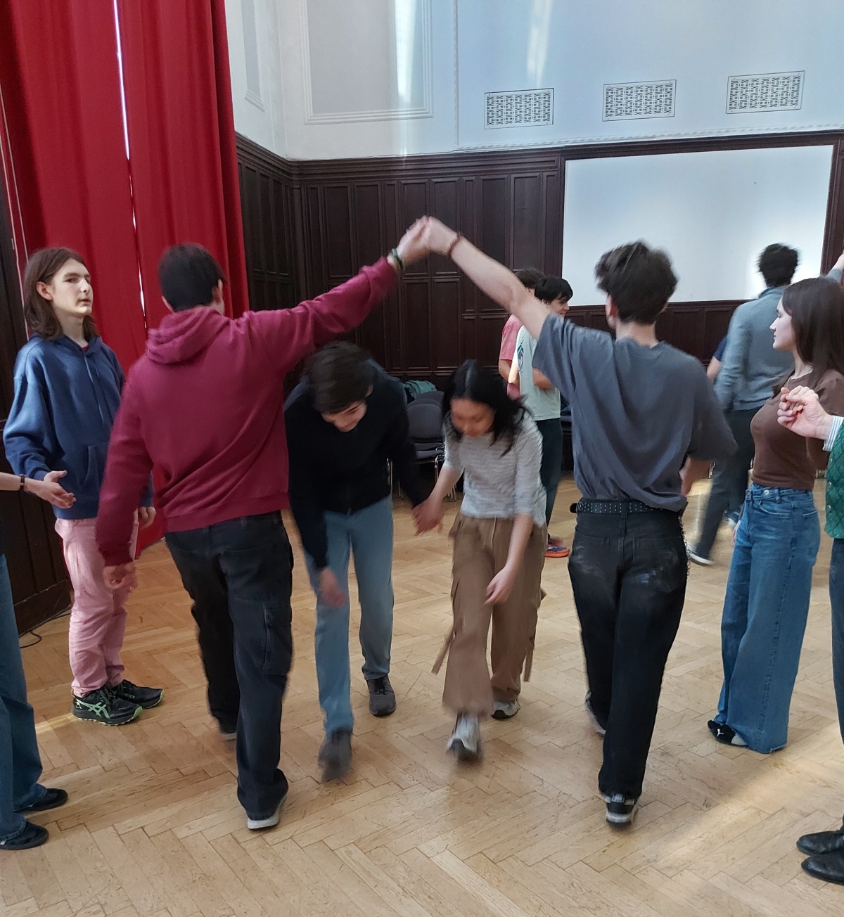 Österreichische Volkstänze stehen nicht oft am Programm der Jugendlichen. »Am Anfang war ich schon skeptisch, aber dann hat es einfach Spaß gemacht!«, meinte eine Schülerin danach. Hermann Härtel jun. spielte auf der steirischen Harmonika auf, MMag. Wolfgang Lhotka erklärte die Schrittfolgen und Figuren und wirbelte gleich auch selbst die Schülerinnen und auch die Schüler über das Parkett. Die Paare waren bunt gemischt, Mädchen mit Burschen, mit Mädchen, Burschen mit Burschen – ganz egal, alle erwiesen sich als schwungvolle Volkstänzer.