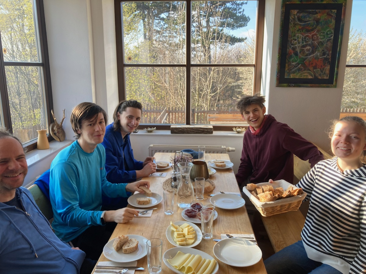 Am Freitagabend genossen wir das köstliche Bio-Essen auf dem Höllensteinhaus, wiederholten die bereits gelernten Jodler - den »Ötz«, den »Idl« und den »aus dem Strechengraben« - scheiterten an unseren Wettbewerbsstücken fürs Jugendsingen aufgrund der nur halb so großen Besetzung und spielten bis spät Scharade Plus. Am nächsten Tag konnten einige Schüler:innen (nicht nur Popper! ;-)) noch alle 68 Wörter.