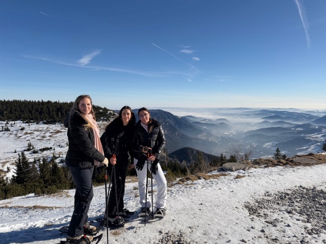 Während in Wien dichter Nebel lag, wanderten wir bei strahlendem Sonnenschein mit Schneeschuhen zum Ottohaus und wieder zurück. Anschließend stärkten wir uns in einer Hütte und hatten am Ende noch viel Spaß beim Rodeln.