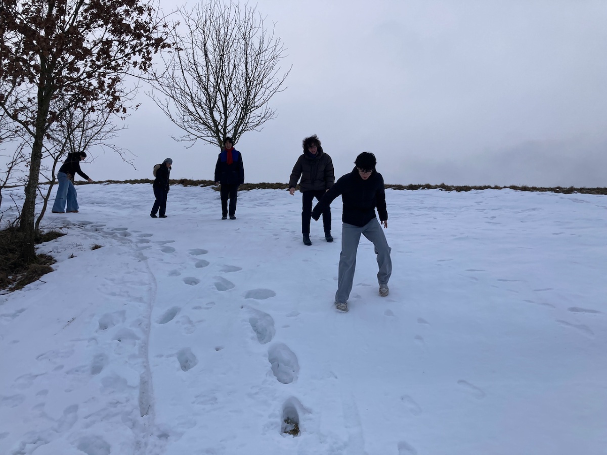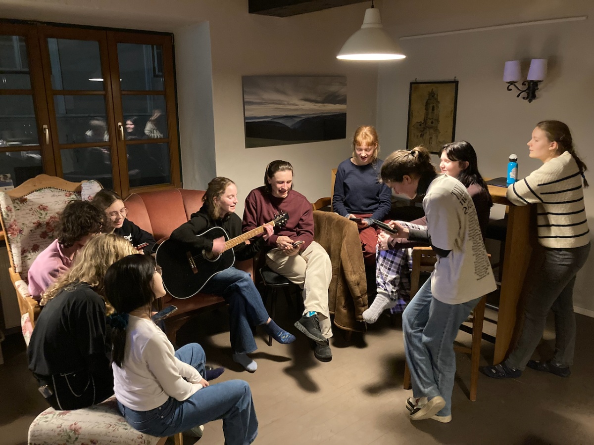 Kaum angekommen, packten wir kurz unsere Sachen aus, bevor auch schon die erste Chorprobe begann. Das Landhotel Yspertal stellte uns freundlicherweise einen großen Mehrzweckraum zur Verfügung, in dem wir ausreichend Platz zum Singen hatten. Wir probten fleißig bis zum Mittagessen – und mit unserem tollen Gesang wurde sogar das Wetter immer schöner. Am frühen Nachmittag machten wir uns auf zu einem Schneespaziergang im Wald. Trotz Rutschgefahr hatten wir viel Spaß und kamen zum Glück alle sicher wieder zurück, um am Nachmittag und Abend weiter zu proben und uns auf das Konzert vorzubereiten. Auch nach dem »offiziellen Programm« wurde noch lange gesungen.