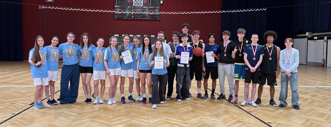 Am Dienstag, den 3.3.2026, ging der Finaltag der Wiener Schulmeisterschaft im Basketball in der ehrwürdigen Stadthalle über die Bühne. Beide Teams, mit denen das Wiedner Gymnasium / Sir Karl Popper Schule angetreten war, konnten Siege feiern und jeweils einen Stockerlplatz in durchaus hitzigen Partien erspielen.
