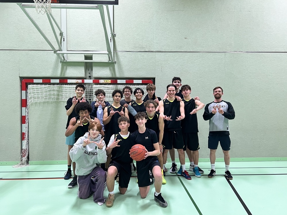 Nach zweijähriger coronabedingter Pause nimmt eine Mannschaft unserer Oberstufe wieder an der Wiener Basketball-Schulmeisterschaft teil und startet überaus erfolgreich. Am 11.11.2022 folgt einem 67:23 gegen HIB 3 Boerhaavegasse ein 67:24 gegen HLW 10 Reumannplatz, und damit der Gruppensieg sowie der souveräne Aufstieg in die nächste Runde.
